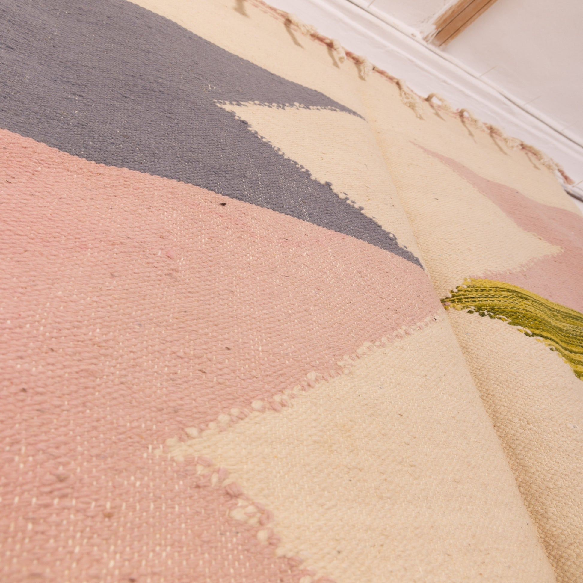 Akhnif rugs come from a rich Berber weaving tradition known for flatweave construction and geometric abstraction. They’re prized for their lightness, fine wool, and modern feel, yet remain deeply tied to tribal symbolism and meaning. This rug’s angular forms evoke ideas of mountains, harmony, and energy flow — a timeless aesthetic wrapped in Moroccan soul.