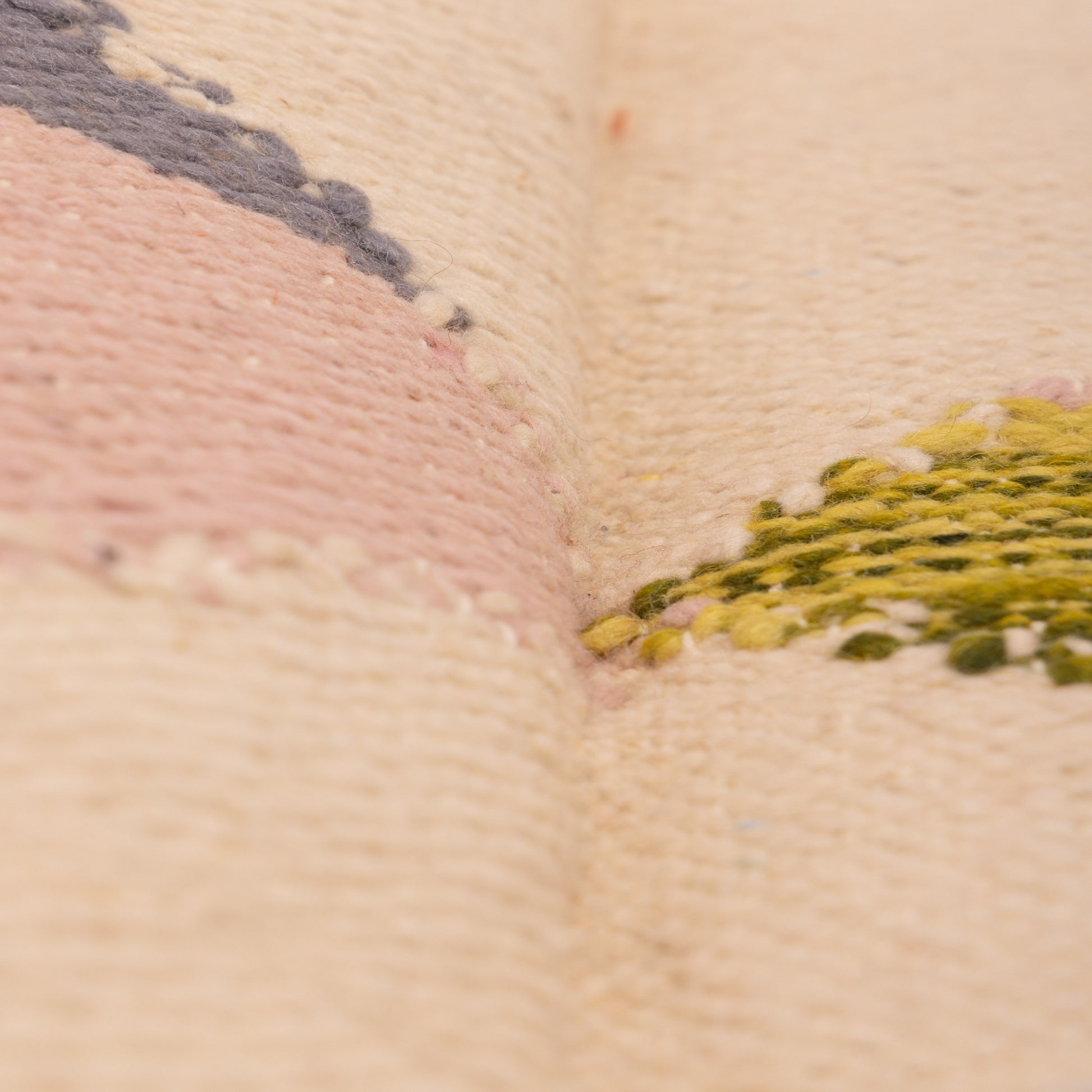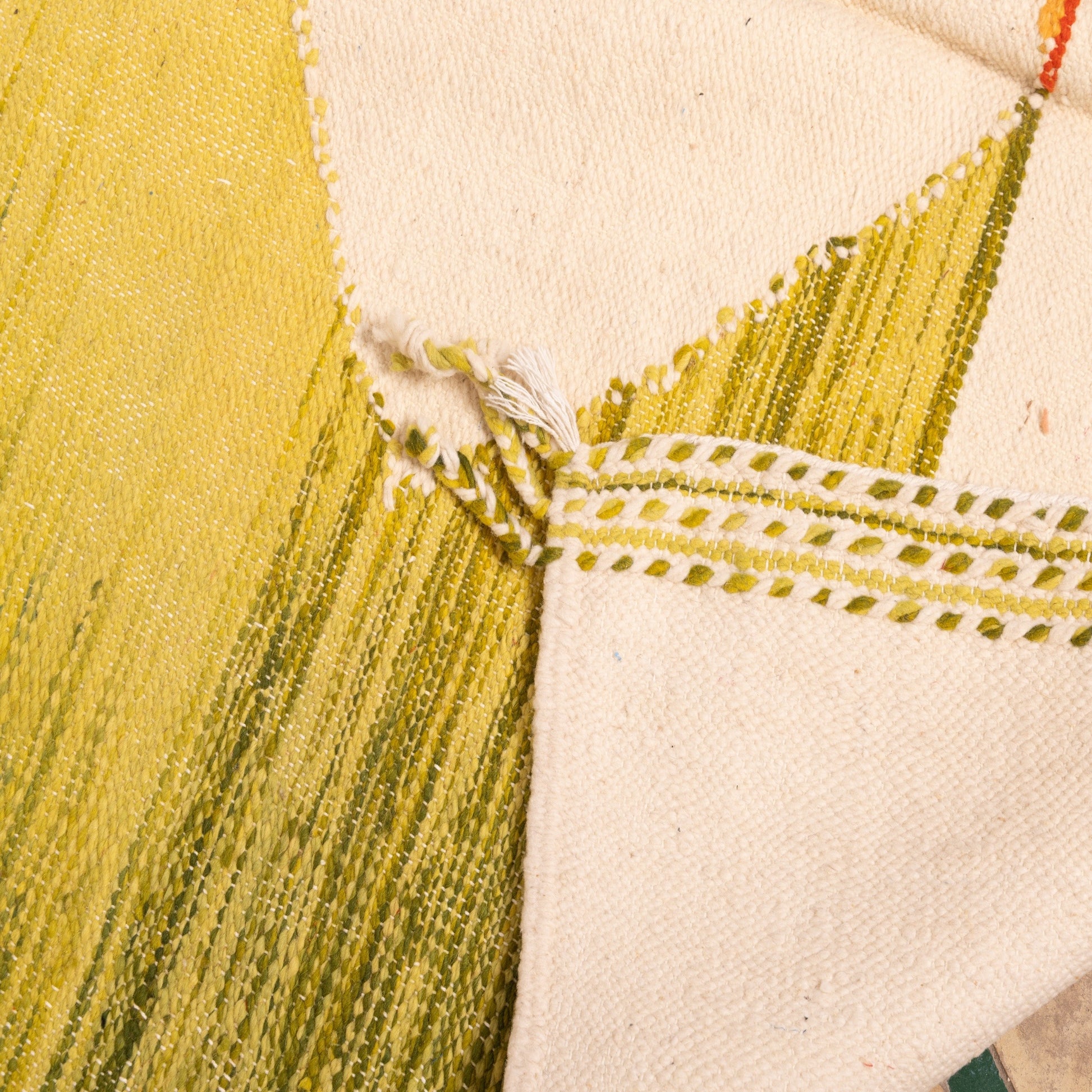 Woven from 100% wool using the time-honored Akhnif technique, this rug is lightweight, tightly constructed, and perfect for modern interiors, wall displays, or layered rug styling. Its symmetry and vibrant tones create an uplifting statement, while its handmade nature ensures every piece is truly one of a kind.