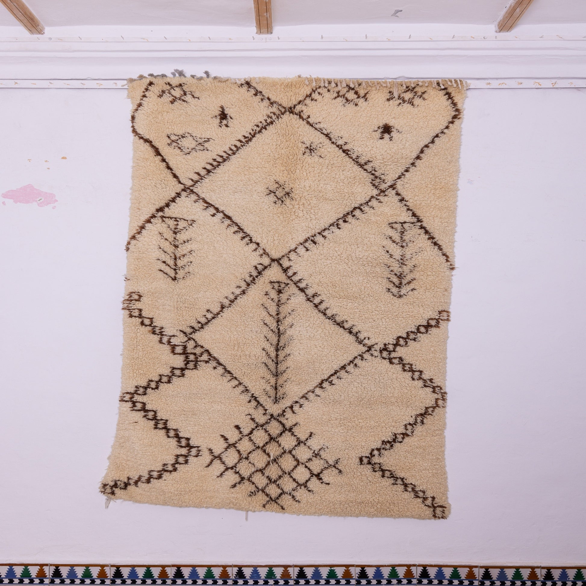 ✔ Color: Creamy ivory base with deep brown geometric Berber patterns