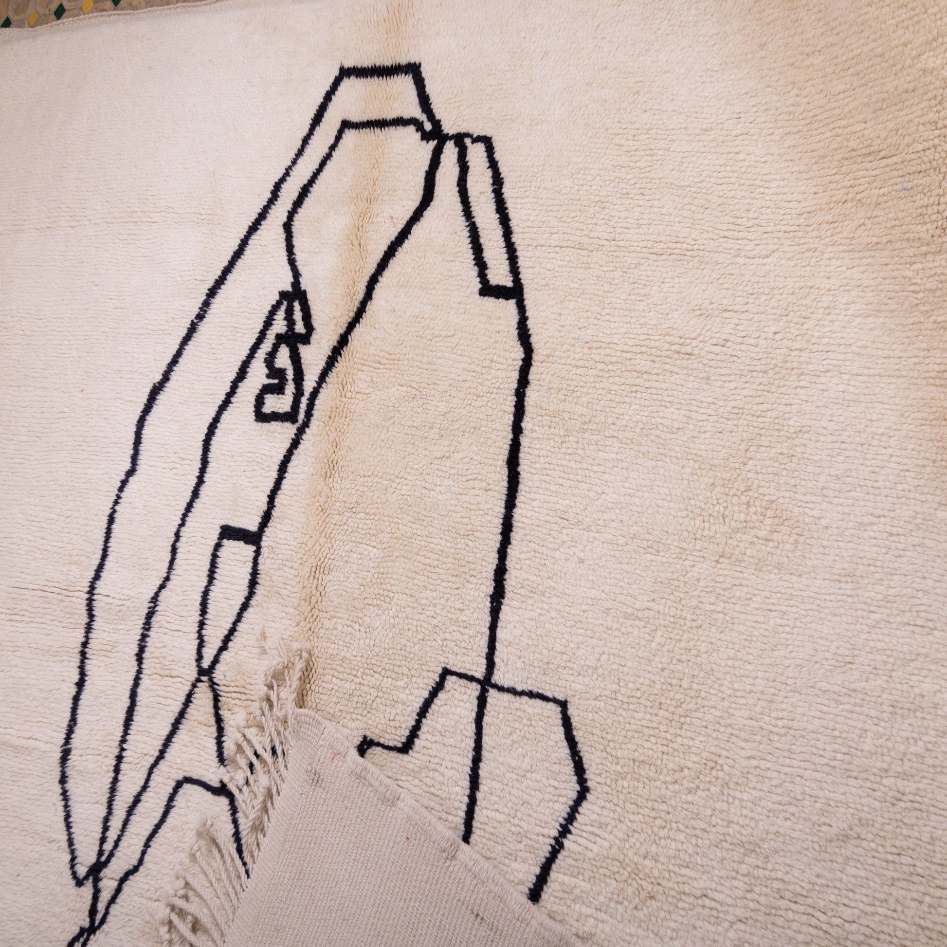 Made from 100% natural wool, it features a soft cream base with a striking black abstract face line drawing, bringing a unique artistic touch to your interior.