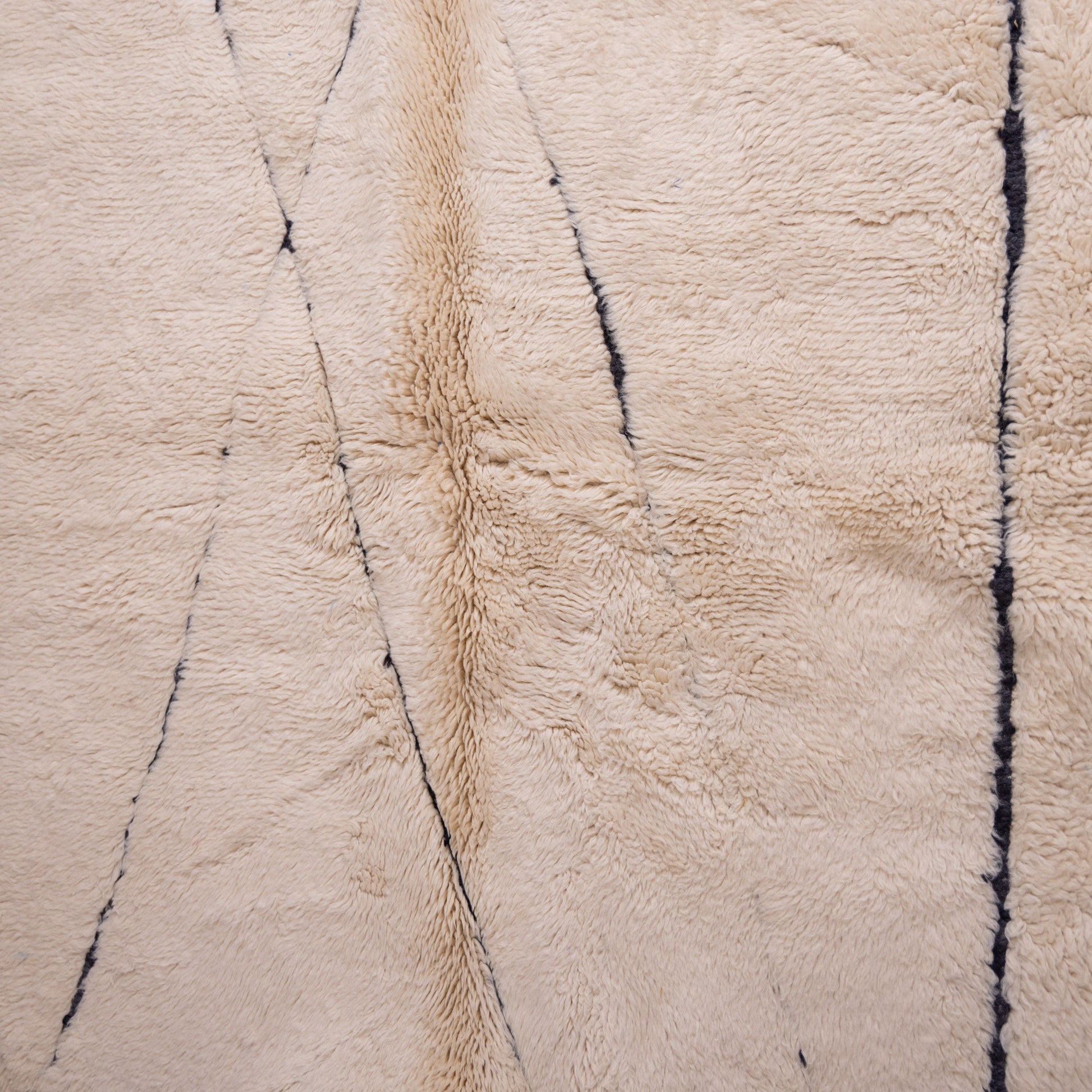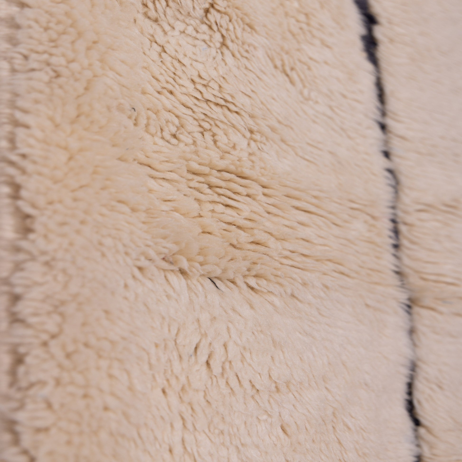 Made from 100% natural wool, it features a plush, soft cream base accented with bold black abstract line patterns, creating a modern yet timeless Moroccan aesthetic.