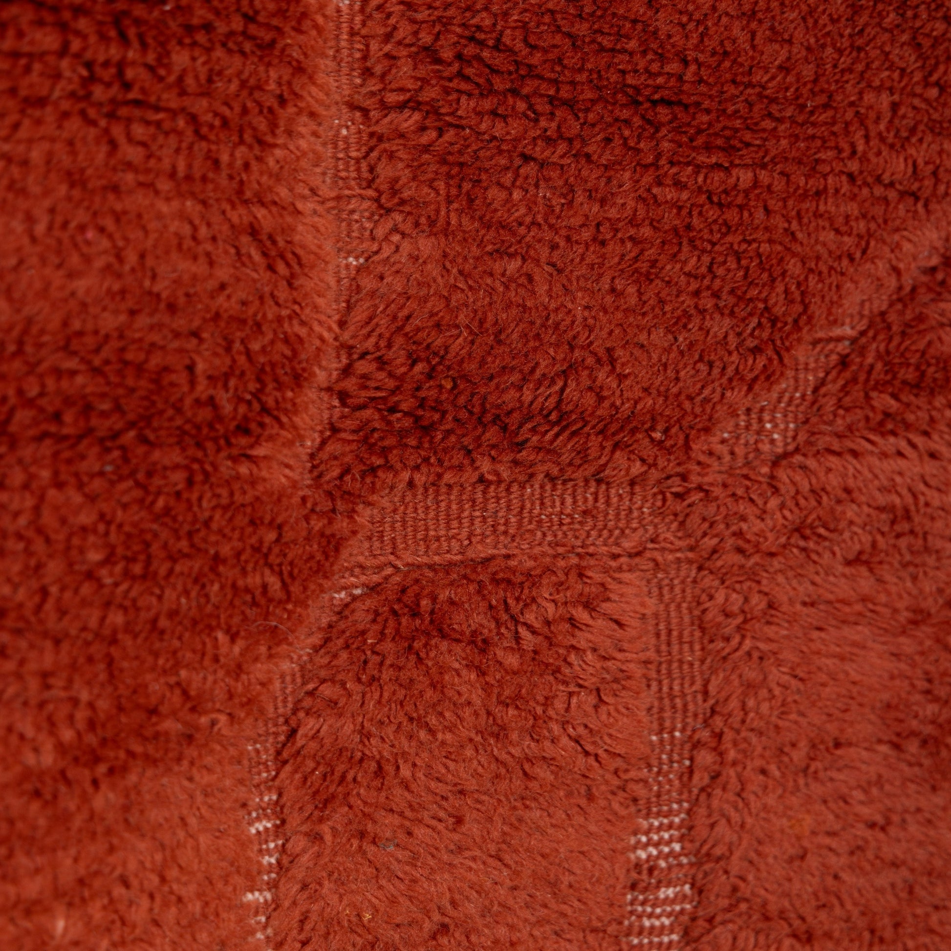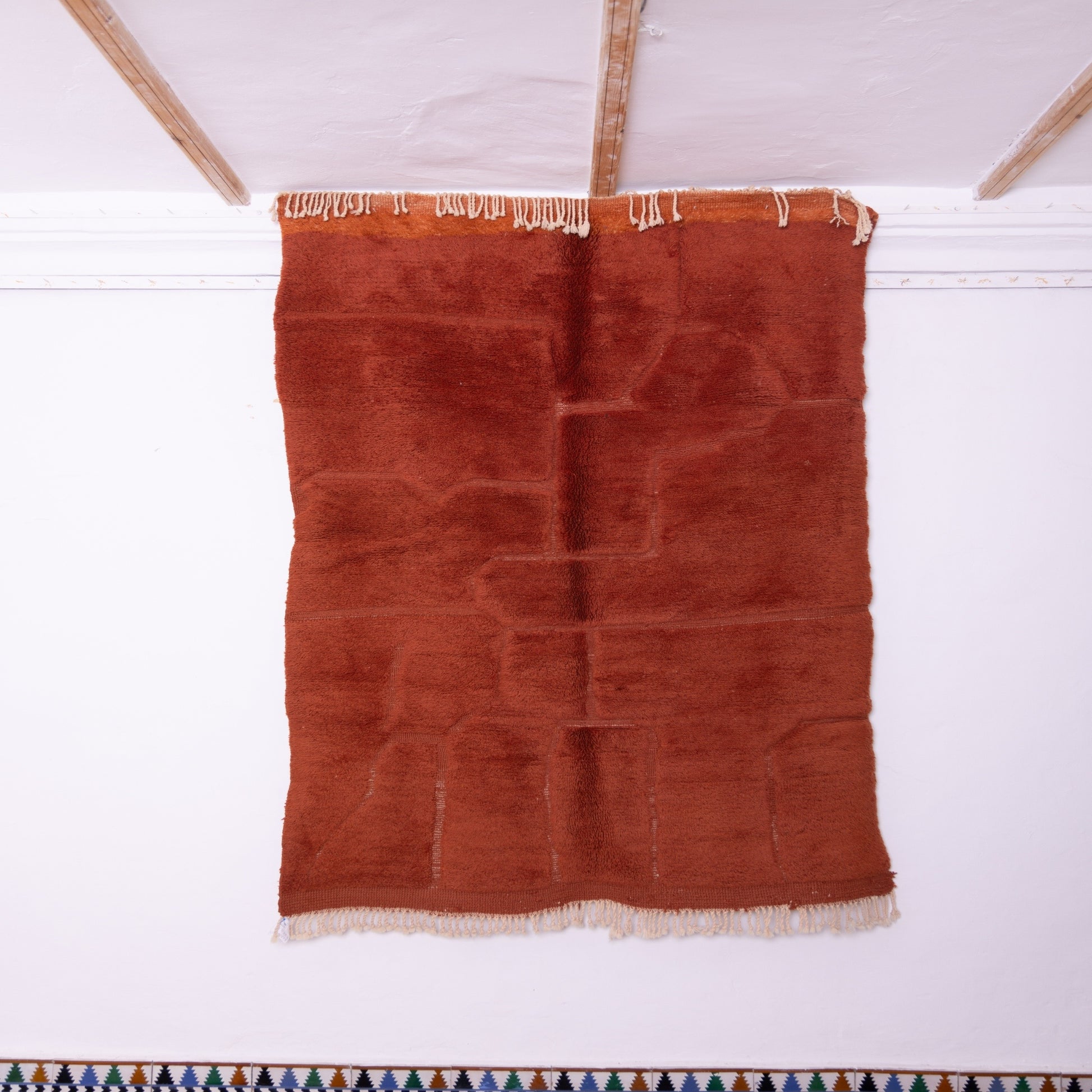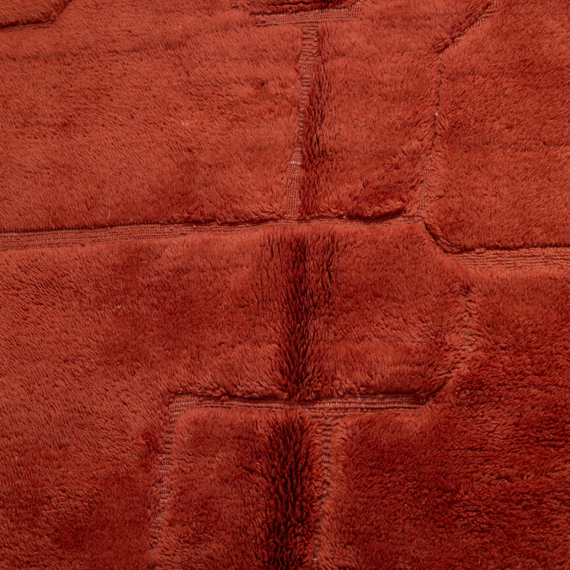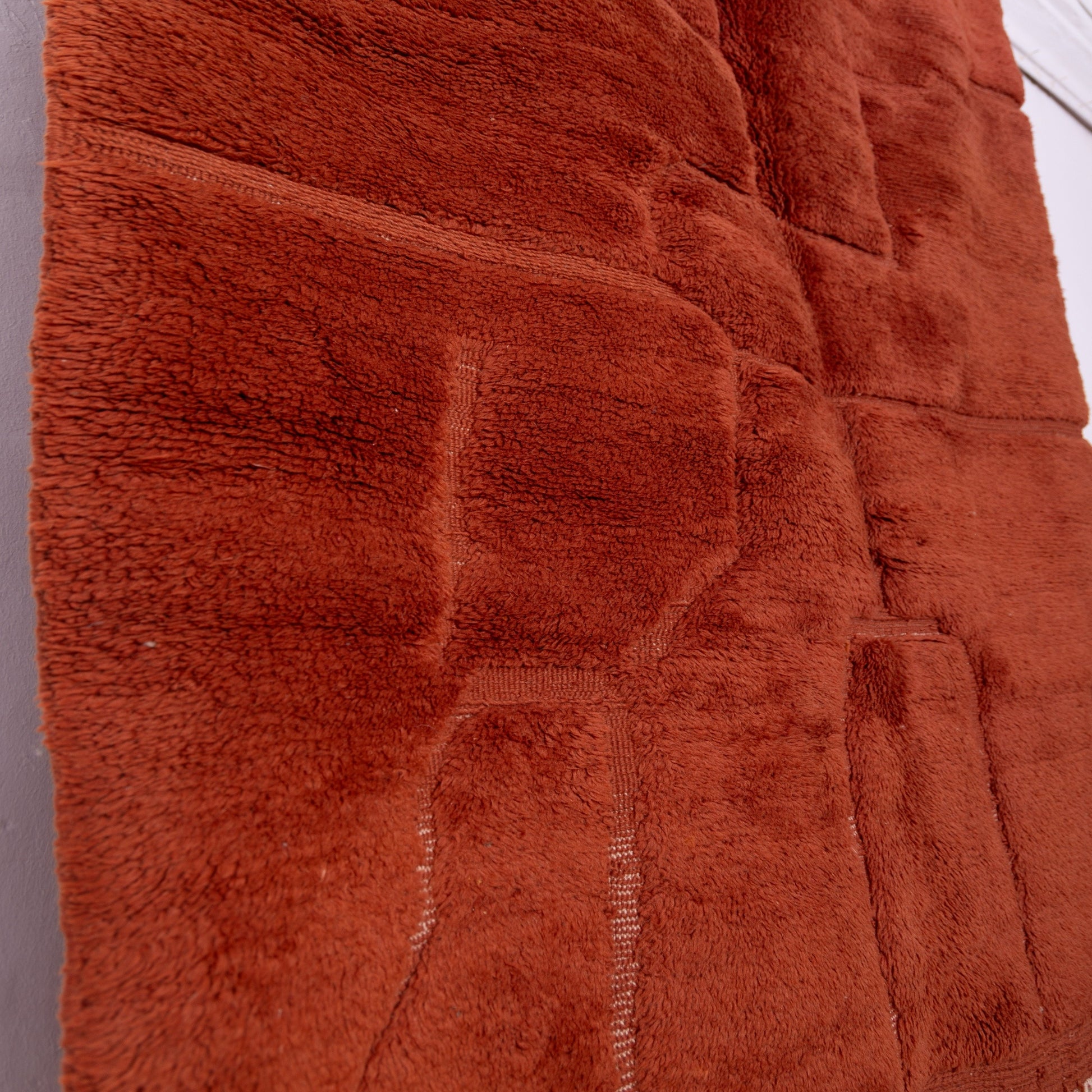 Made from 100% natural wool, it features a deep terracotta hue with a subtle raised geometric pattern, adding warmth, texture, and richness to any space.