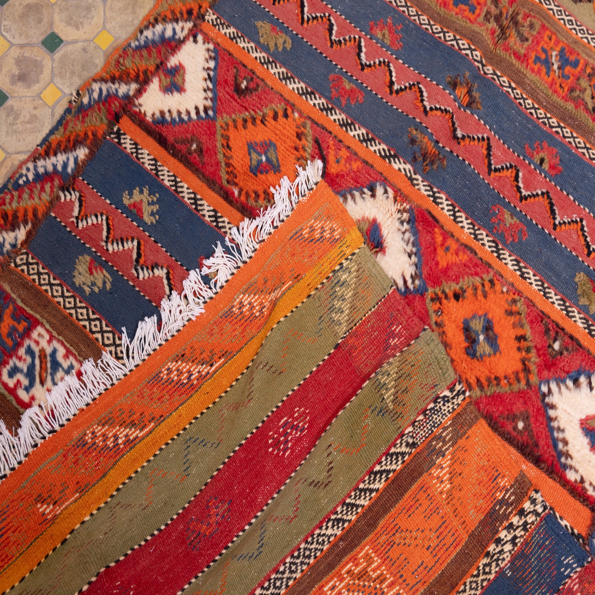 ✔ Bold Berber Motifs – Featuring a striking combination of deep reds, blues, greens, and intricate tribal symbols.