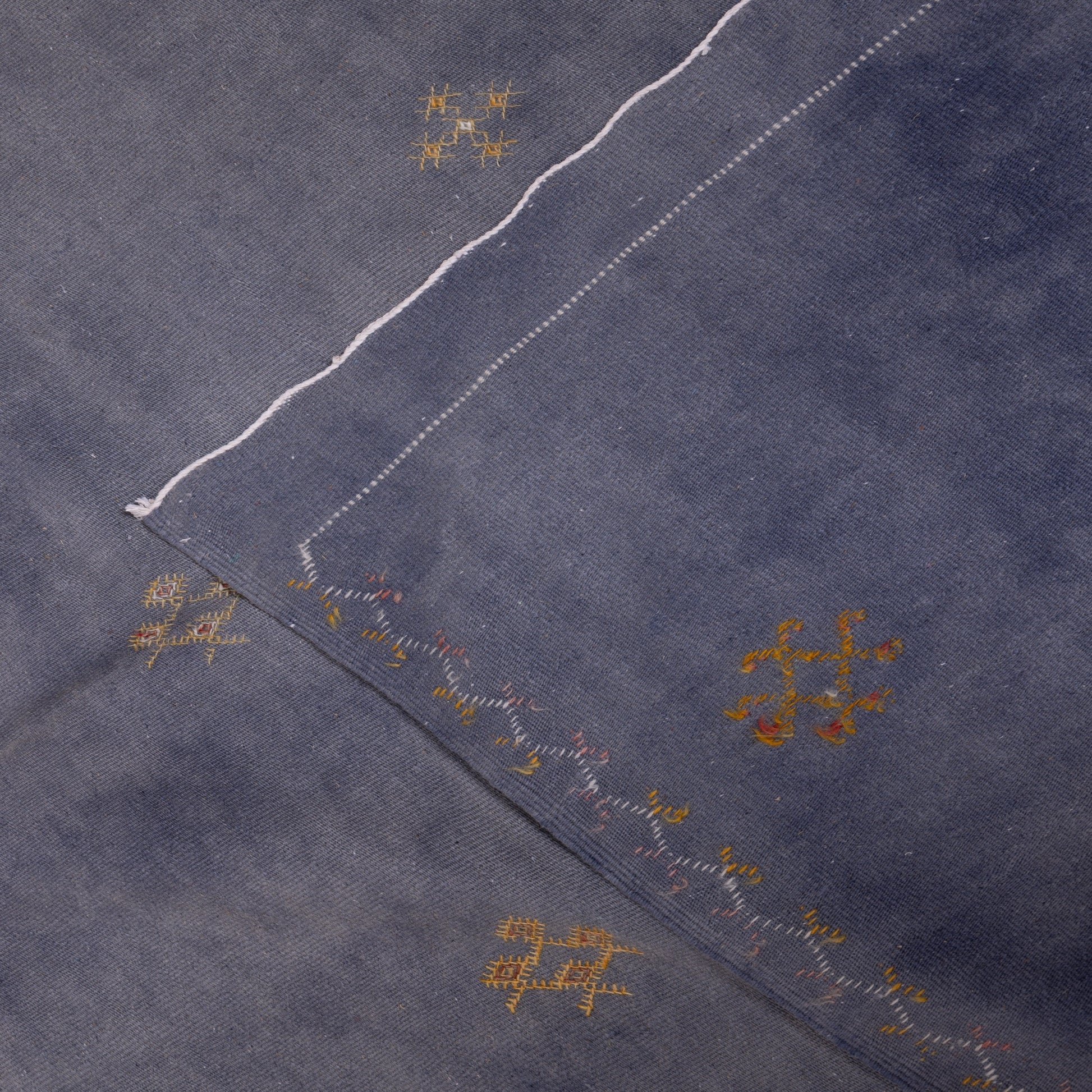 Infuse your space with the elegance and authenticity of Moroccan craftsmanship with this stunning deep blue Akhnif rug. Lovingly handcrafted by Berber artisans, this rug features delicate traditional motifs embroidered onto a beautifully rich indigo-blue background, making it a perfect statement piece for any home.