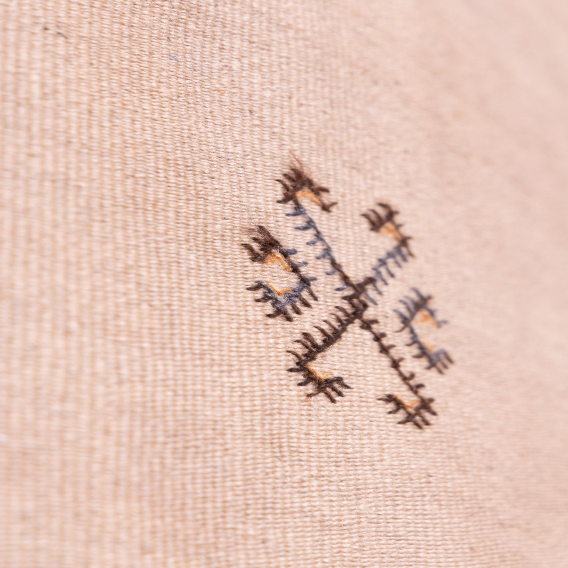 Enhance your home with this exquisite Moroccan Akhnif rug, a masterpiece of handwoven craftsmanship. Designed with a soft beige hue and intricate embroidered tribal symbols, this rug offers a minimalist yet timeless appeal, making it the perfect addition to any modern or bohemian-inspired space.