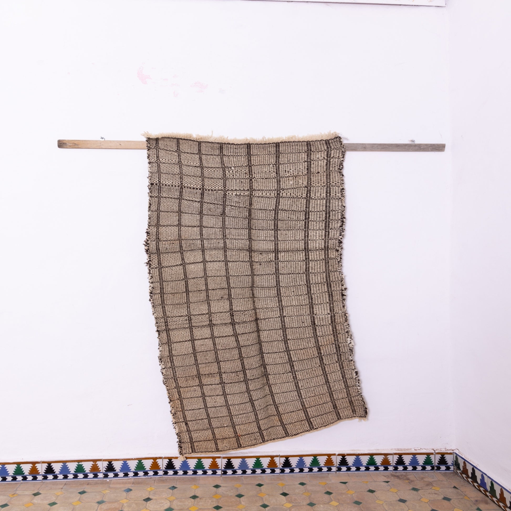 Enhance your living space with this handwoven Moroccan Akhnif rug, featuring a modern minimalist checkered design. Crafted by skilled Berber artisans, this rug blends traditional weaving techniques with contemporary aesthetics.