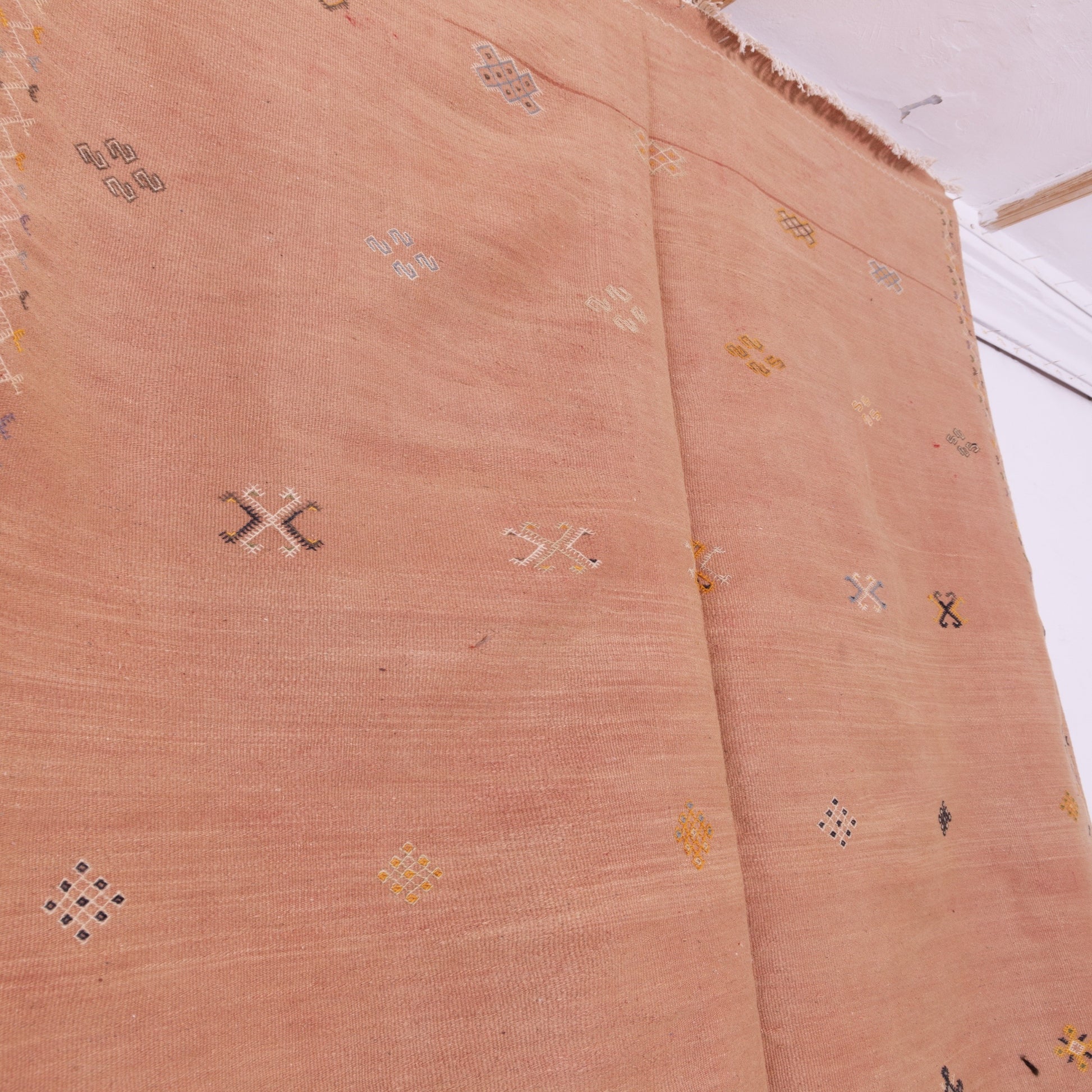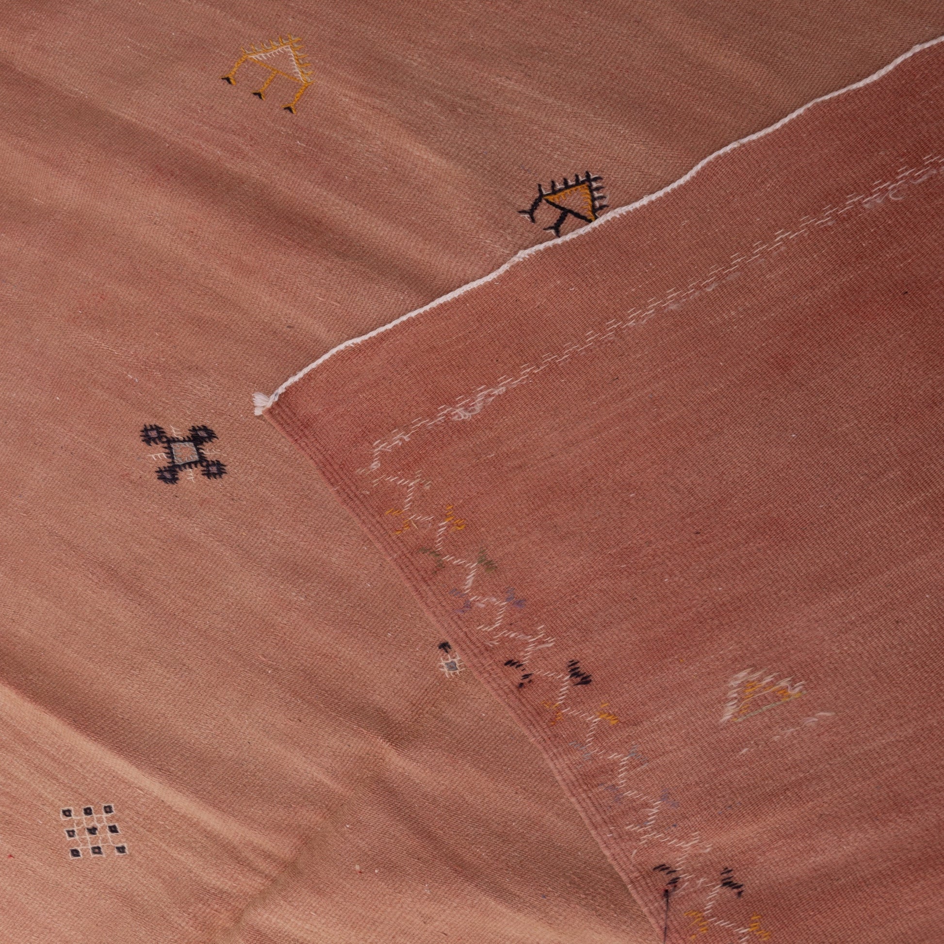 Elevate your home with this beautiful Moroccan Akhnif rug, featuring a soft terracotta hue with delicate Berber motifs. Handwoven by skilled artisans, this rug is a true piece of Moroccan heritage, blending timeless craftsmanship with modern elegance. Its minimalist design makes it a perfect fit for any interior style, whether bohemian, contemporary, or traditional.