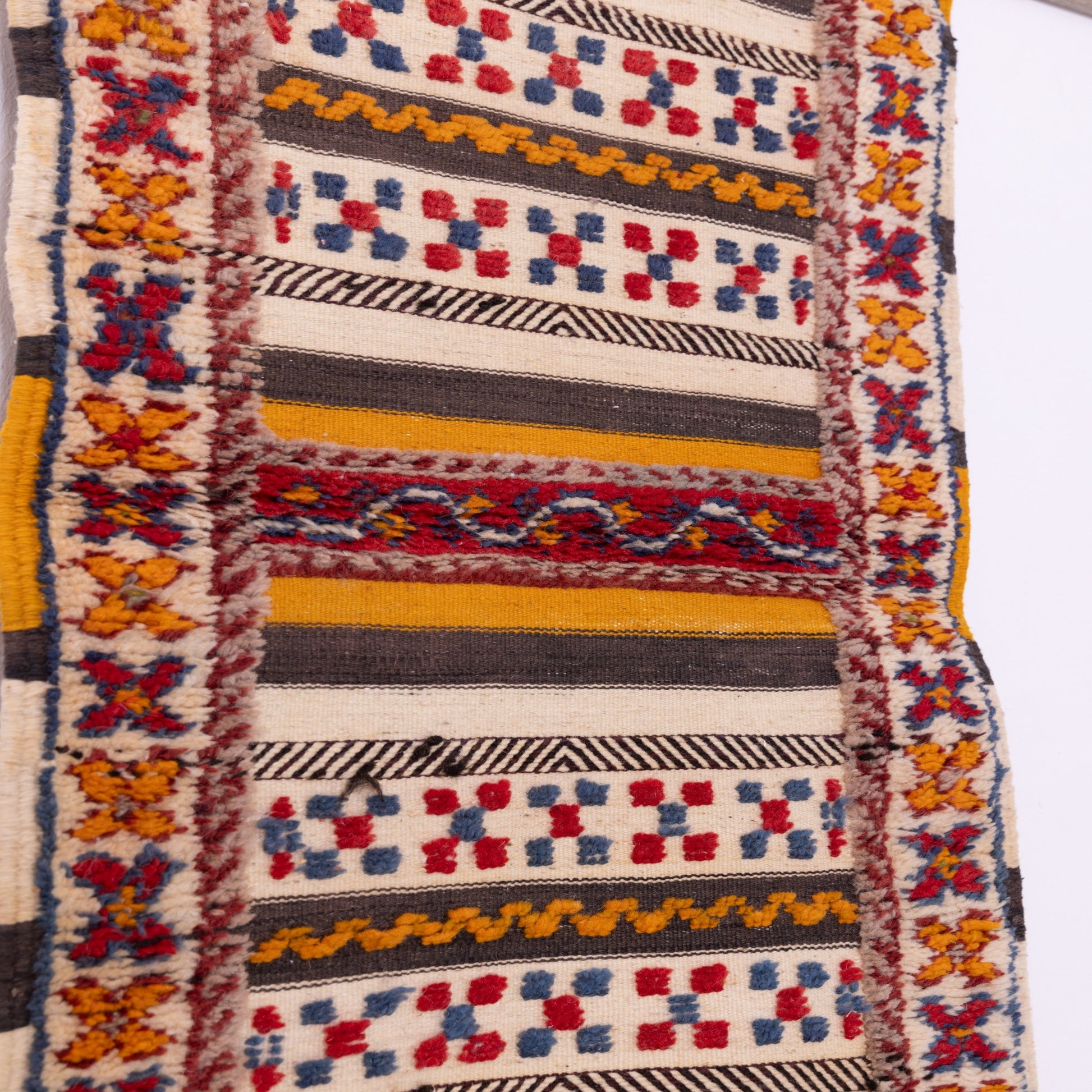 ✔ Vibrant Pattern & Colors – Features a cream and mustard yellow base, accented with bold reds, deep blues, and warm earthy borders.