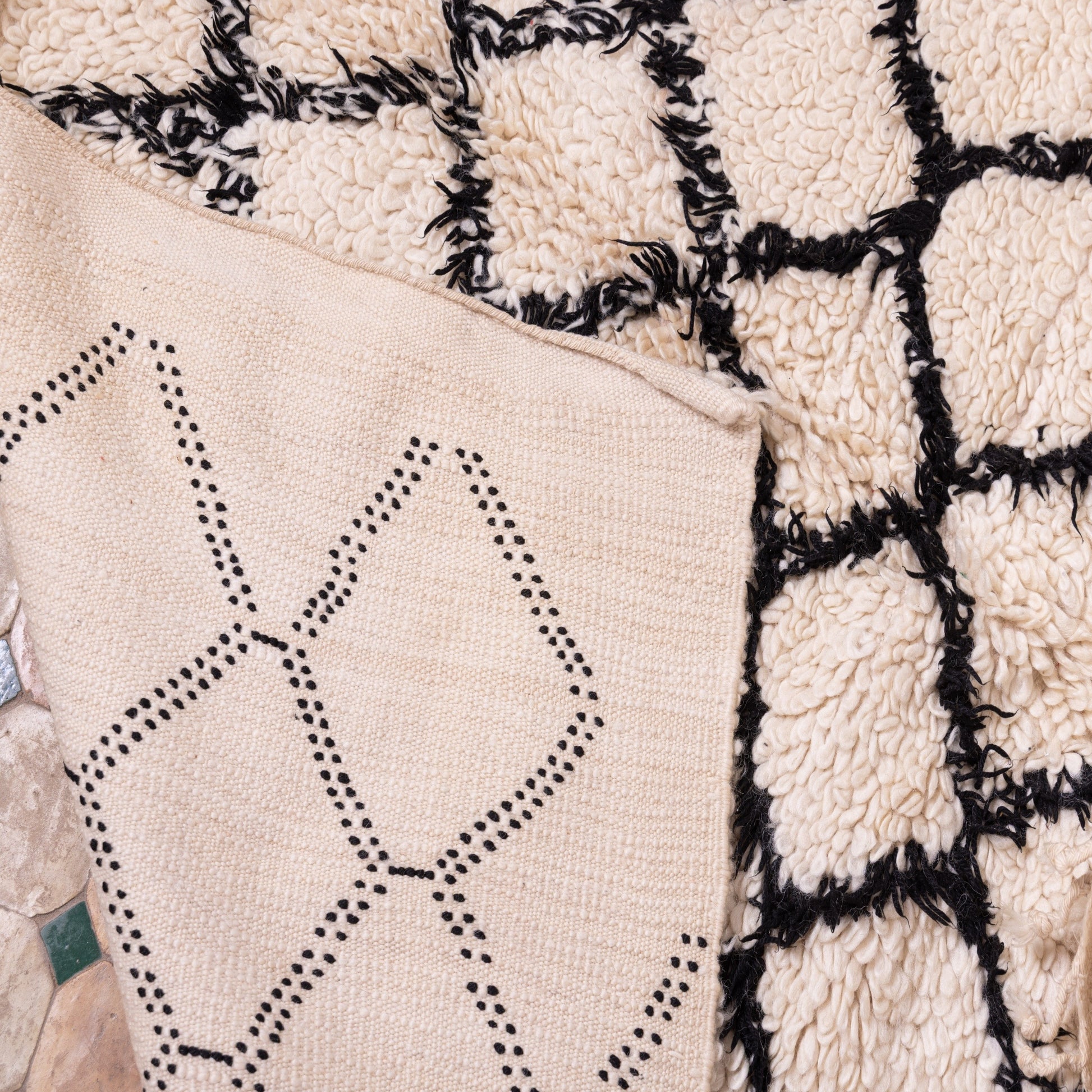 Each Beni Ourain rug carries centuries of cultural heritage, with the diamond motif symbolizing protection, femininity, and prosperity in Berber traditions.