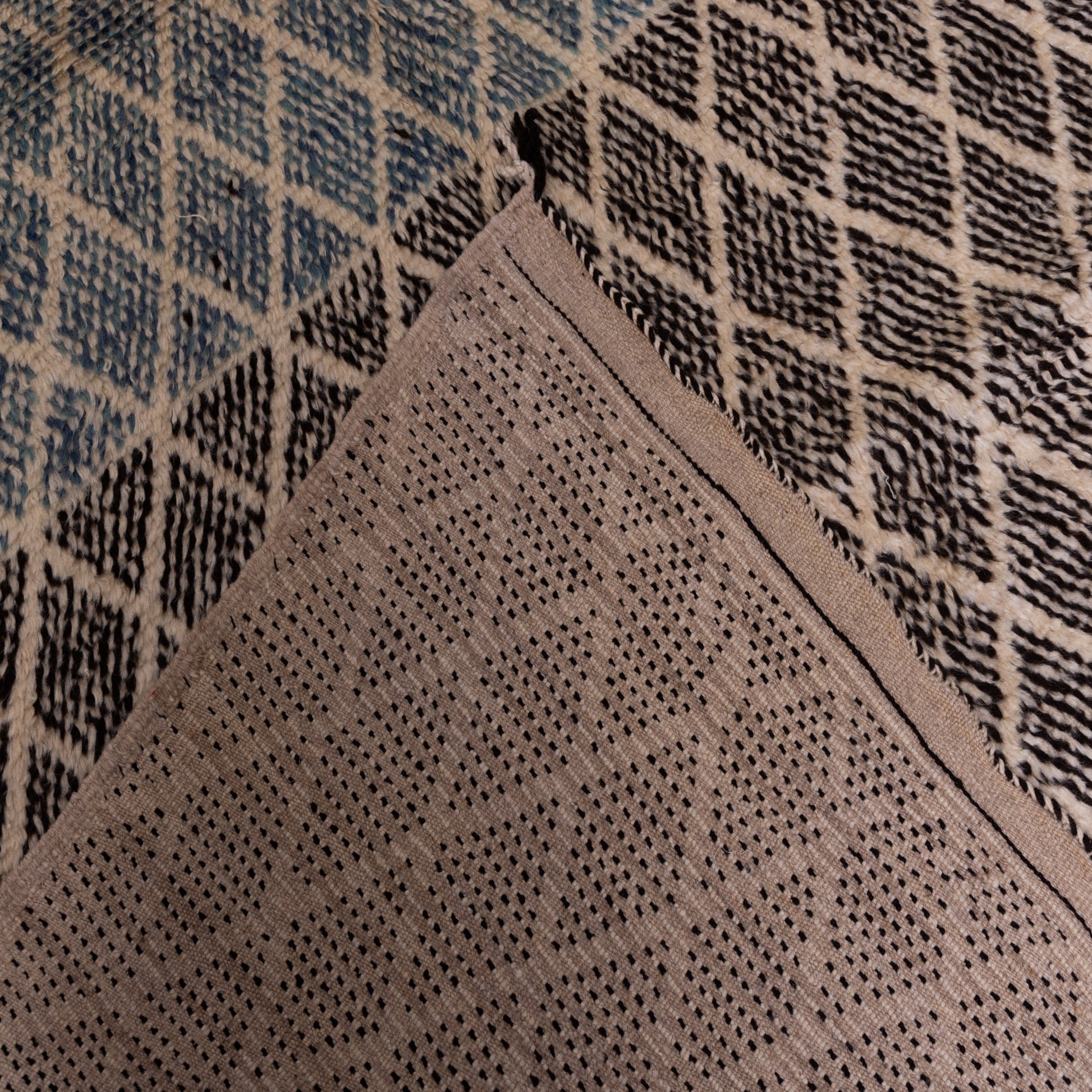 The combination of geometric precision and natural tones makes this rug ideal for modern, bohemian, and minimalist interiors. Whether placed in a living room, bedroom, or hallway, this piece brings a touch of Moroccan heritage and authenticity to any space.