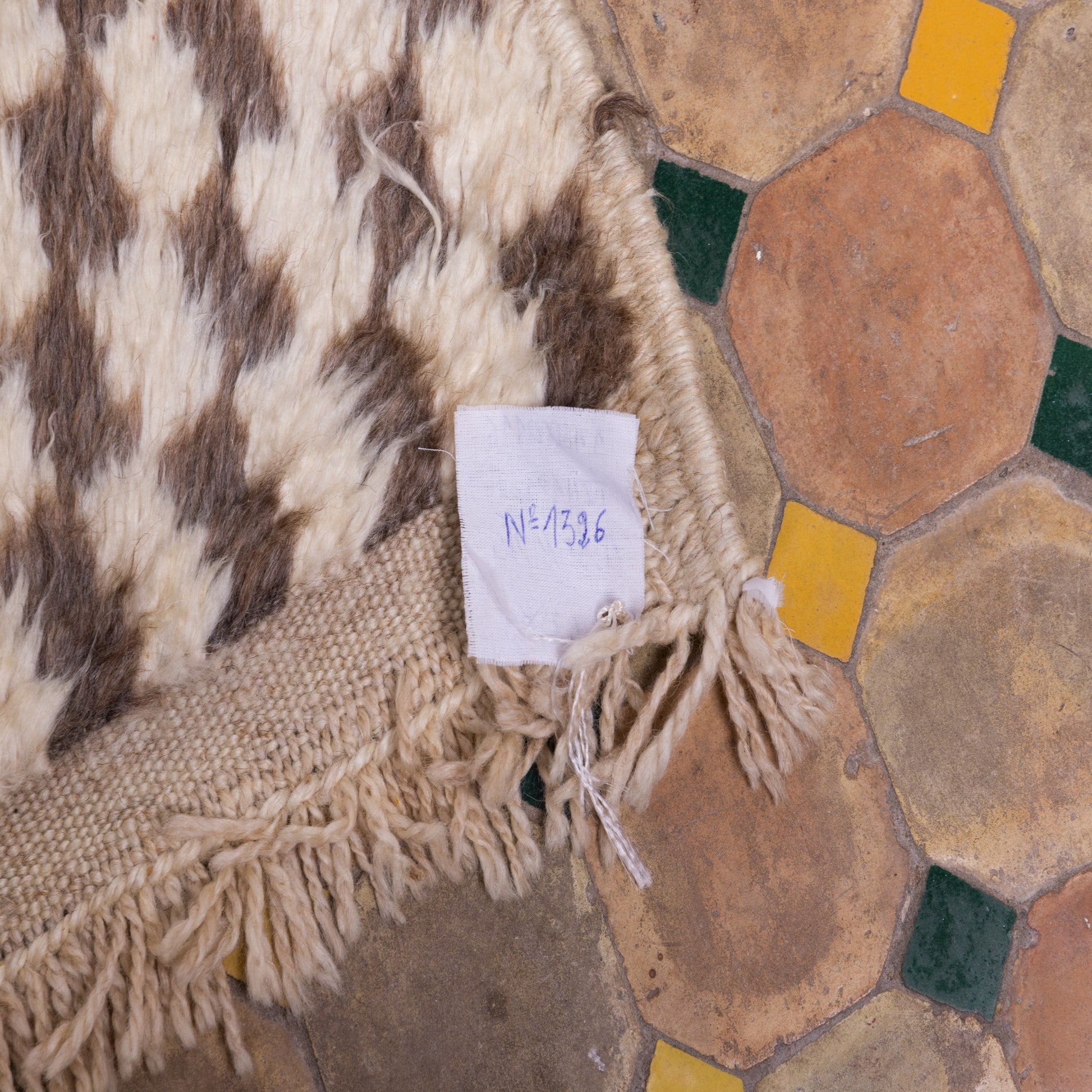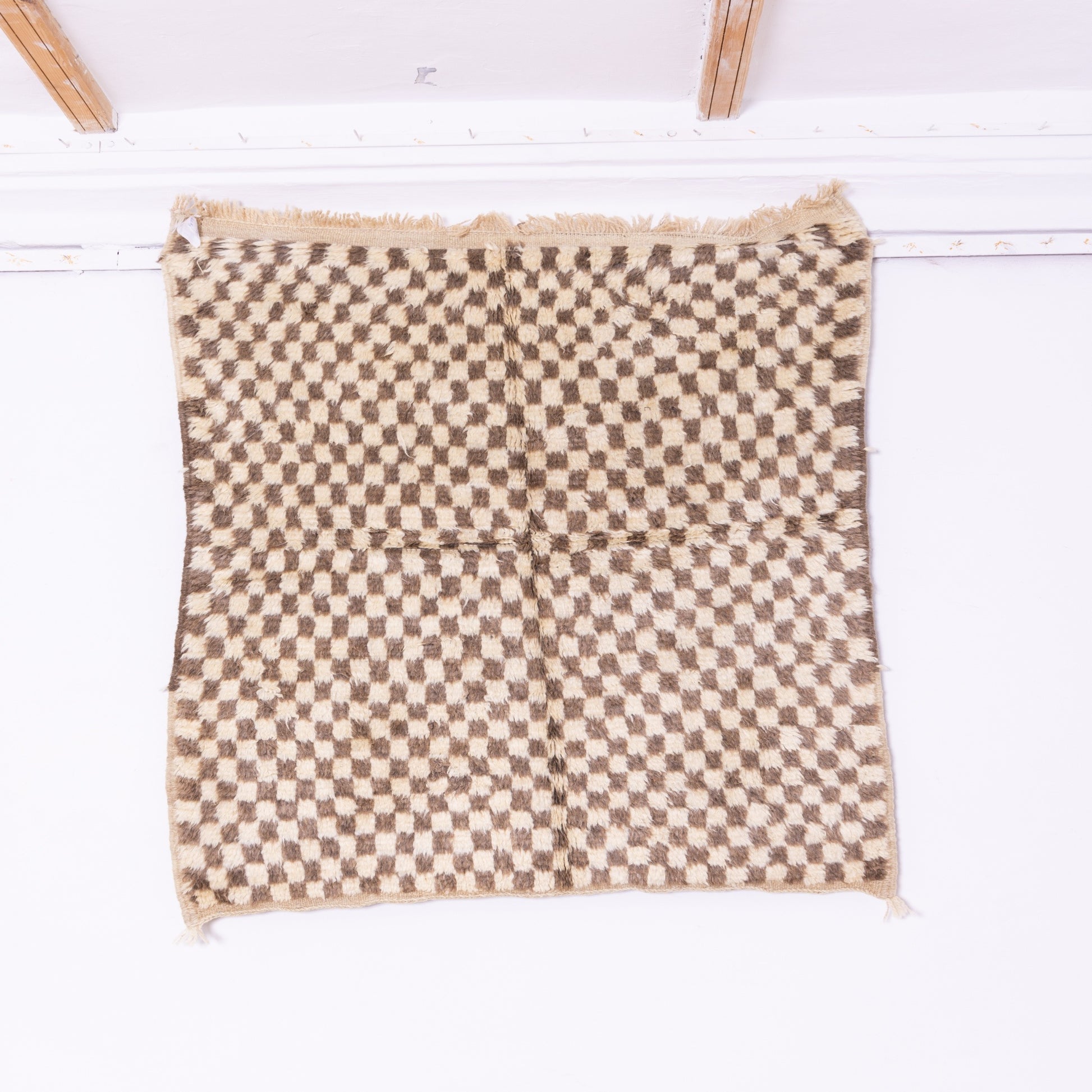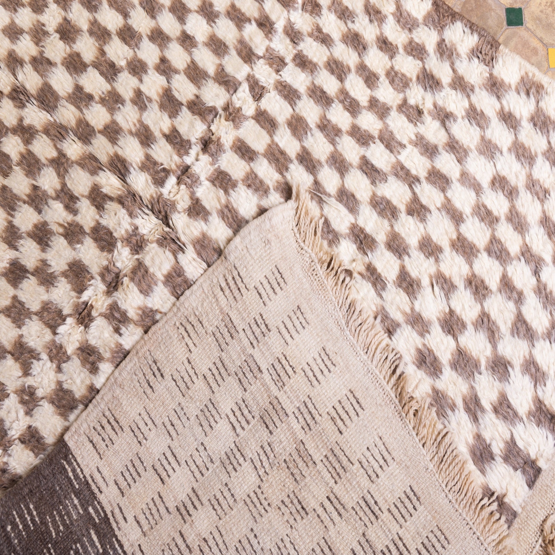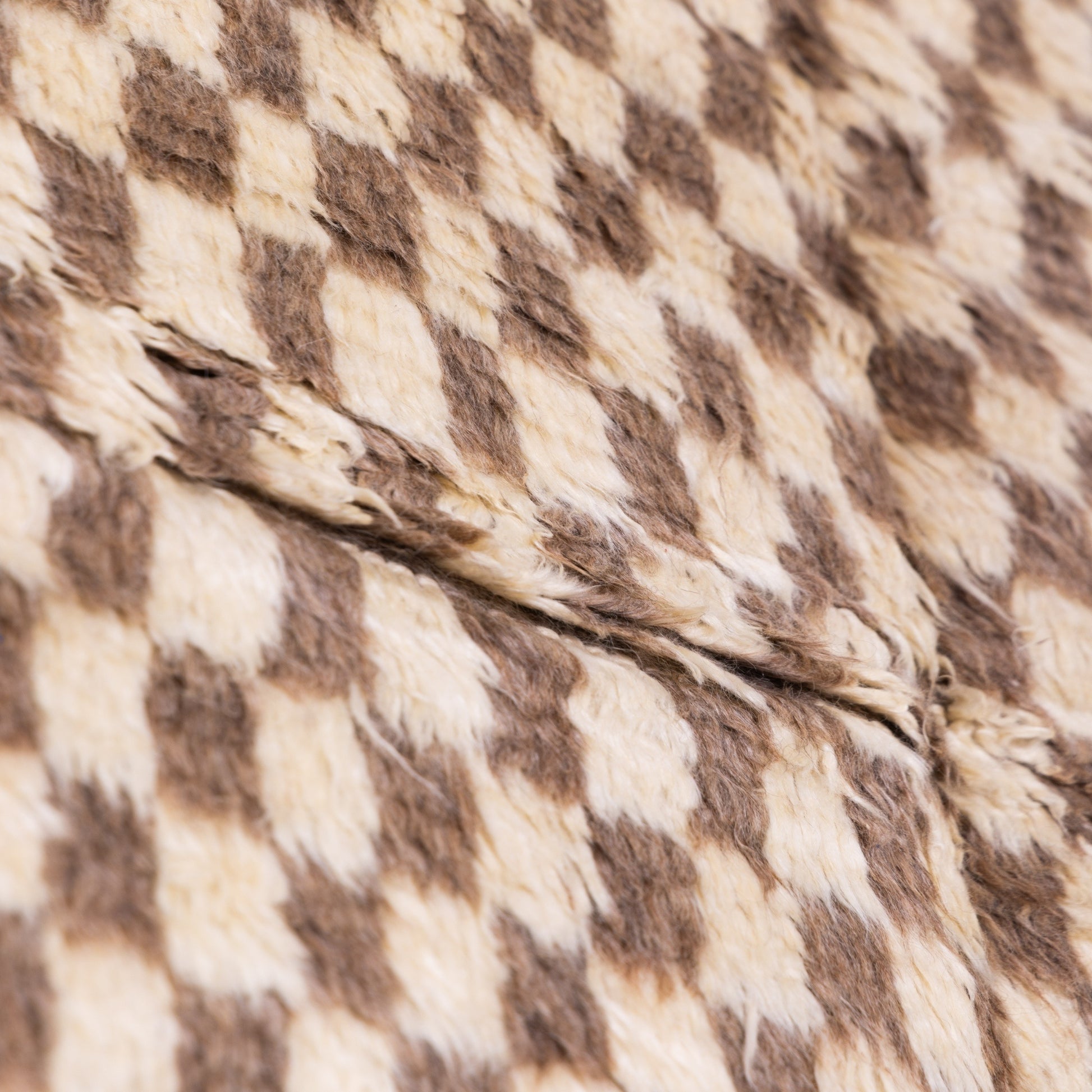 Bring Moroccan tradition into your home with this handwoven Taznakht rug, crafted by skilled Berber artisans using 100% premium wool. Featuring a classic brown and beige checkerboard pattern, this rug embodies a timeless geometric aesthetic that blends perfectly with modern, bohemian, and rustic interiors.