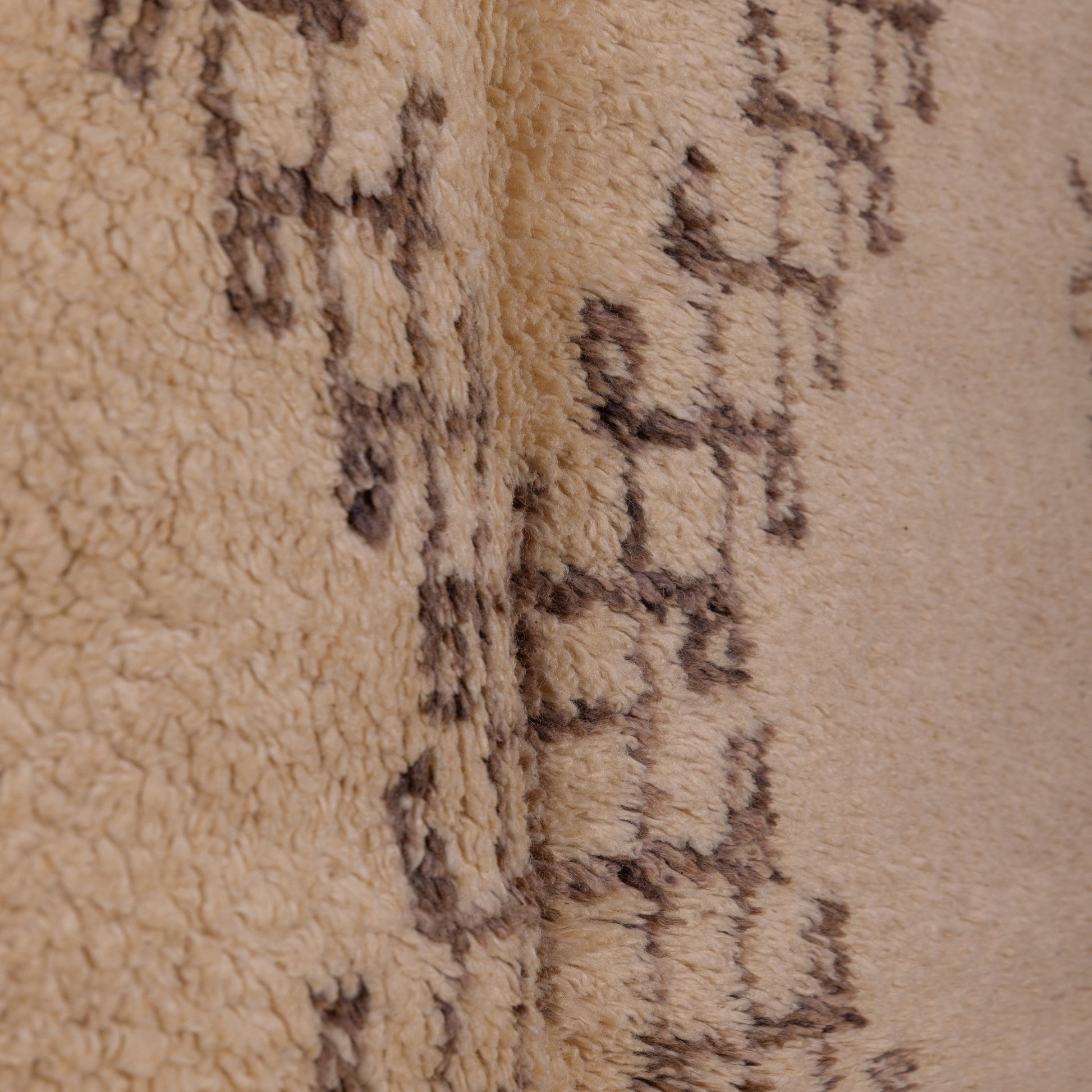 Its central diamond motif, accentuated by intricate geometric patterns, represents protection, unity, and cultural storytelling. The neutral ivory background is beautifully contrasted by deep brown, hand-dyed wool, creating a sophisticated yet rustic aesthetic that effortlessly blends into modern, bohemian, or Scandinavian interiors.