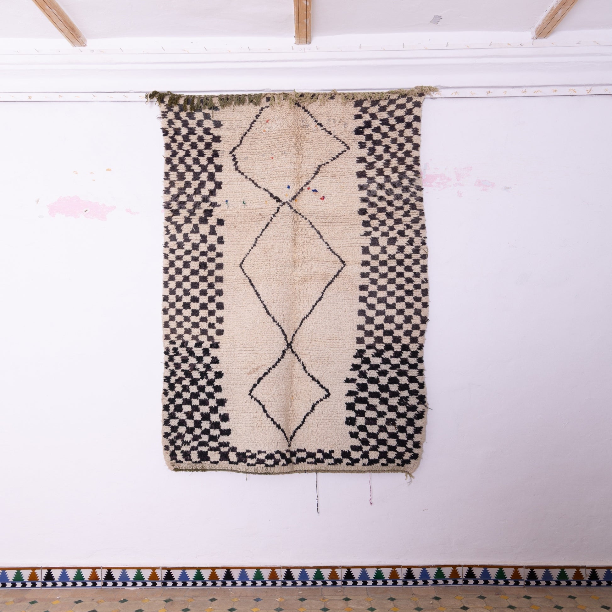 This striking vintage Azilal rug is an authentic Berber textile handwoven from 100% natural wool by skilled artisans in Morocco's Atlas Mountains.