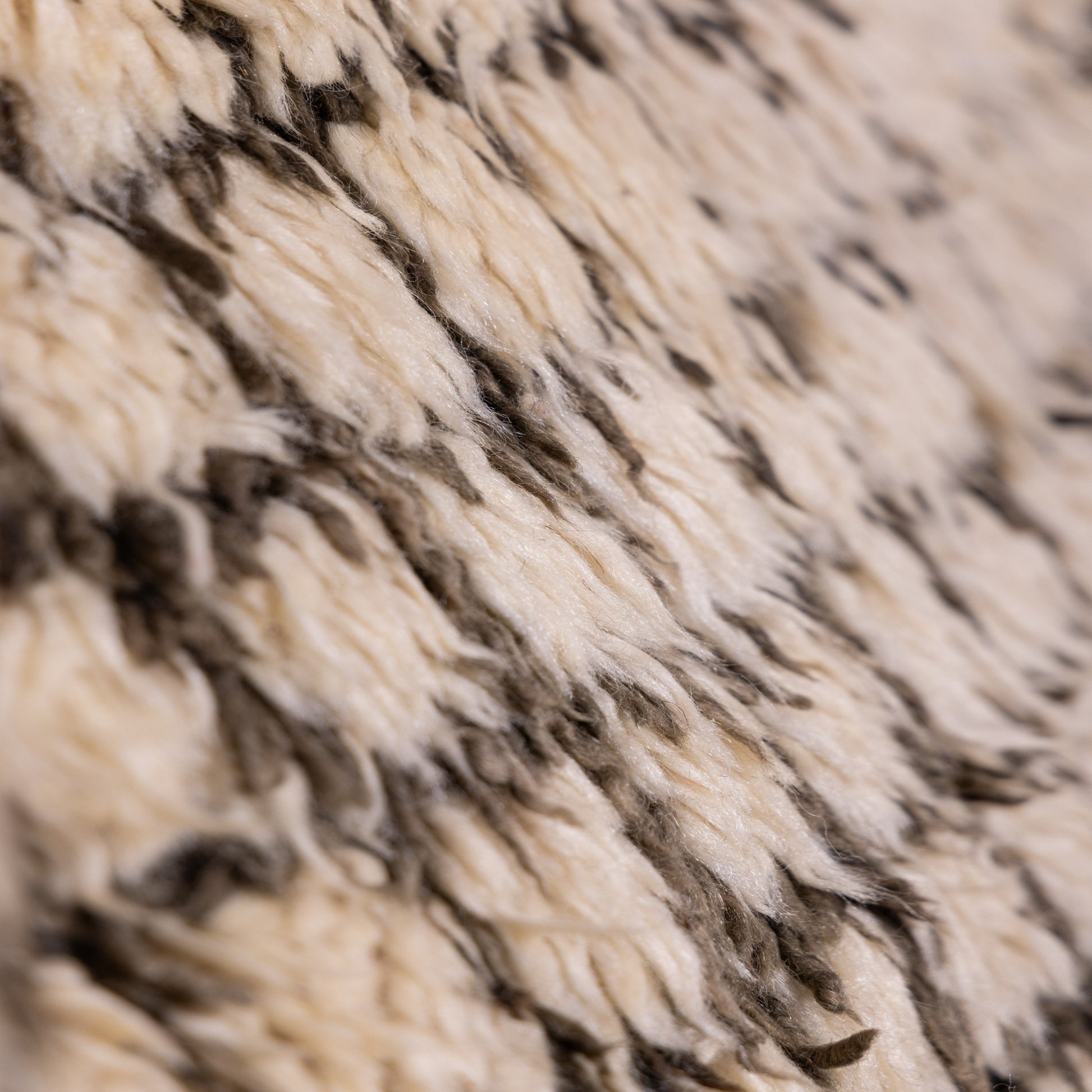 Made from 100% natural wool, this rug boasts a timeless black and ivory color palette, making it a versatile statement piece for any space. The dense yet soft pile adds warmth and texture, making it perfect for bohemian, modern, or minimalist interiors.