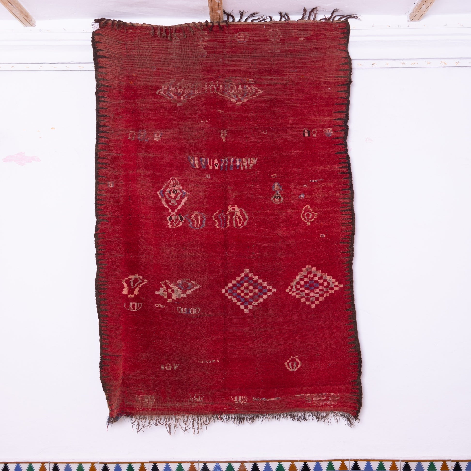Deep Red Tribal Berber Carpet | Authentic Moroccan Artisan Weaving