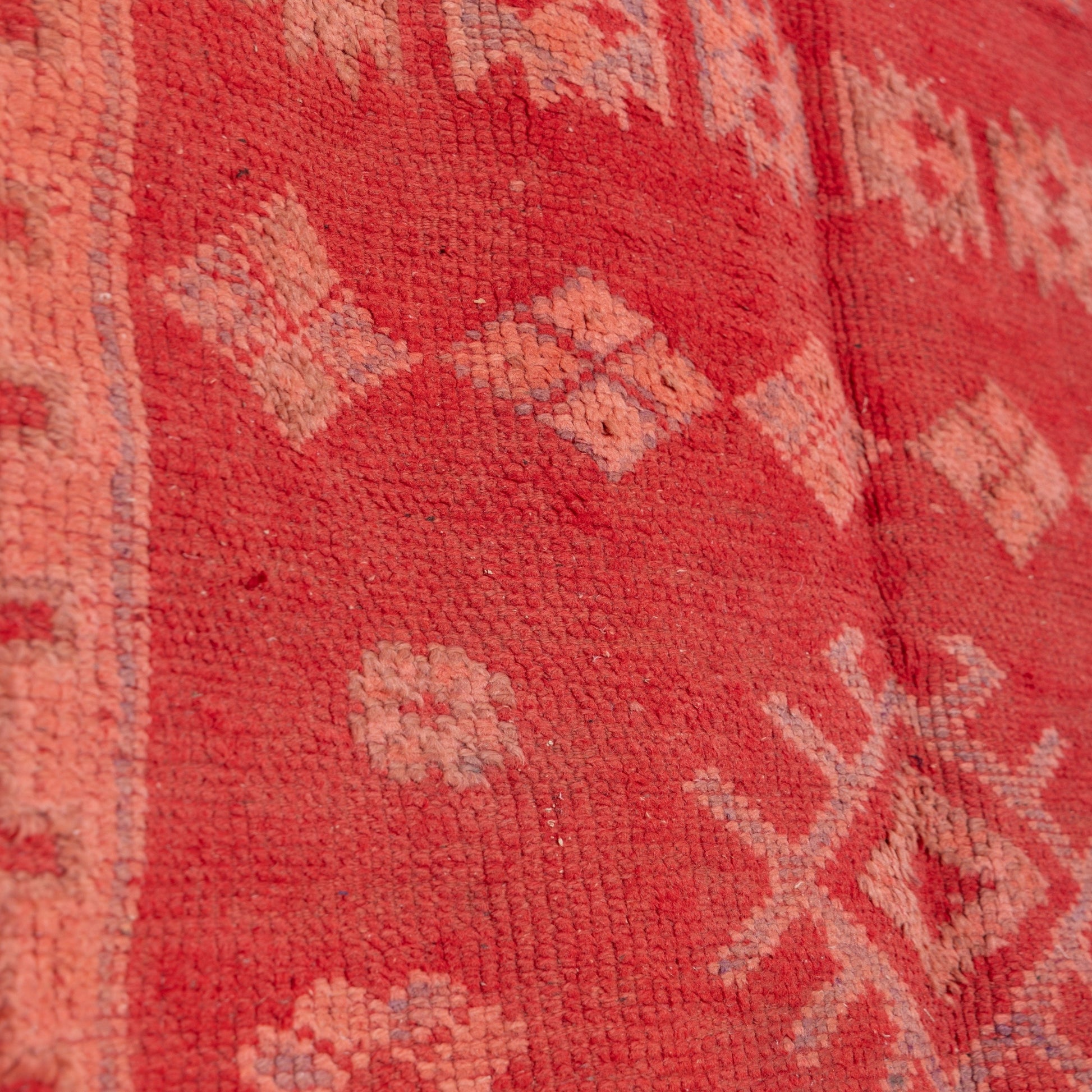Bring the warmth and authenticity of Morocco into your home with this stunning Vintage Rehamna Rug. Handwoven by Berber artisans, this rug showcases rich earthy reds, geometric tribal motifs, and a beautifully detailed border, making it a true statement piece.