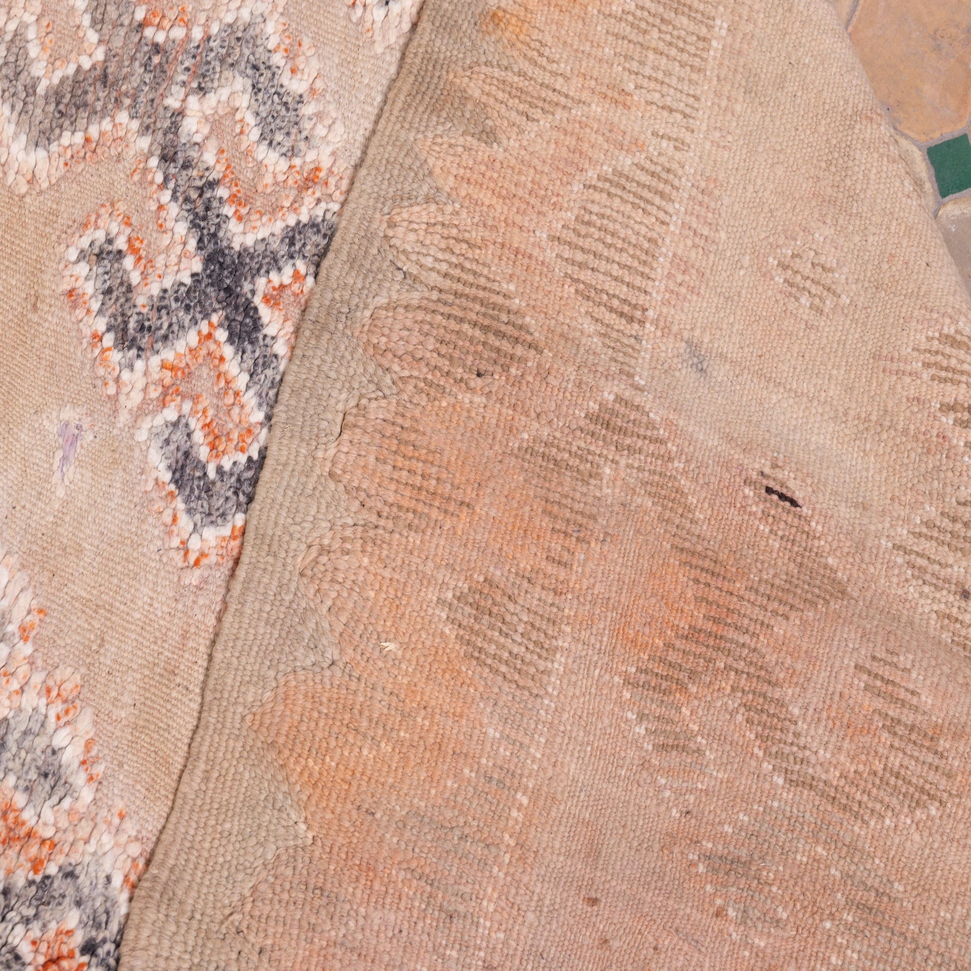 Add a touch of authentic Moroccan artistry to your home with this rare vintage Talsint rug, an exquisite handwoven piece crafted by Berber artisans using 100% natural wool. Its intricate geometric V-pattern design and subtle earthy tones create a timeless aesthetic, perfect for both modern and bohemian interiors.