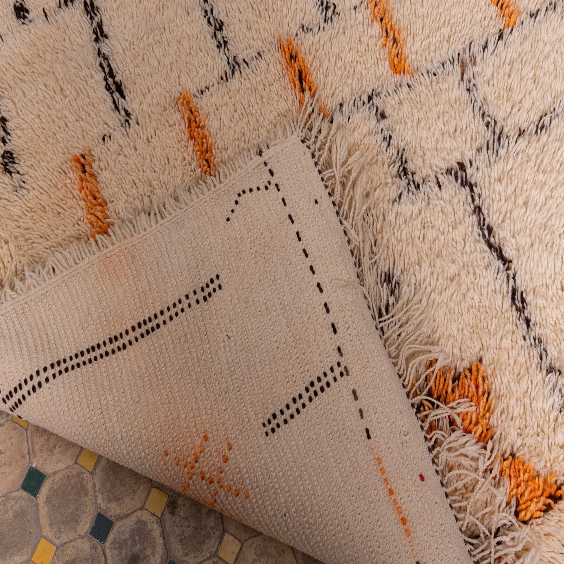 ✔ Color Palette: Warm ivory base with striking black & orange Berber symbols